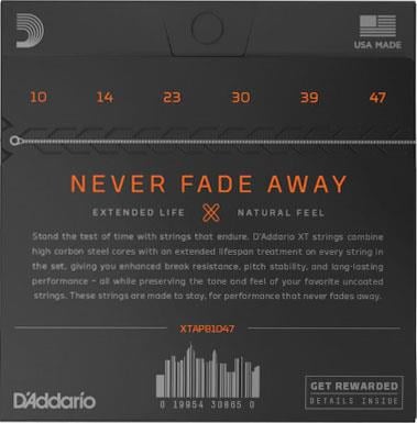 D'Addario XT Acoustic Phosphor Bronze strings combine our most popular acoustic alloy with an advanced corrosion resistance treatment on every string in the set, preserving the natural tone and feel of uncoated strings. Available for 6 and 12-string acoustic guitar ranging from extra-light to medium gauges.