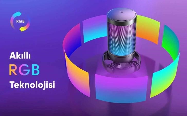 Fifine Ampligame masanıza konulduğunda kablosuz bir mikrofon gibi gözükecek çünkü kablo düzeni sayesinde mikrofon arkasında bilgisayarınıza direkt bağlanacak. Mikrofonu taktığınız zaman çalışıp çalışmayacağını anlamanın en iyi yolu sesinizi kaydetmektir ama Fifine Ampligame kullanıyorsanız bunu daha kısa bir yolu var. Mikrofon takıldığında RGB ışıkları yanıyorsa bu, mikrofonun USB’den gücü aldığının ve kullanıma hazır olduğunun işaretidir. RGB ışıkları ise sabit kalmıyor. 4 tane tür arasında geçiş yapabiliyorsunuz.
